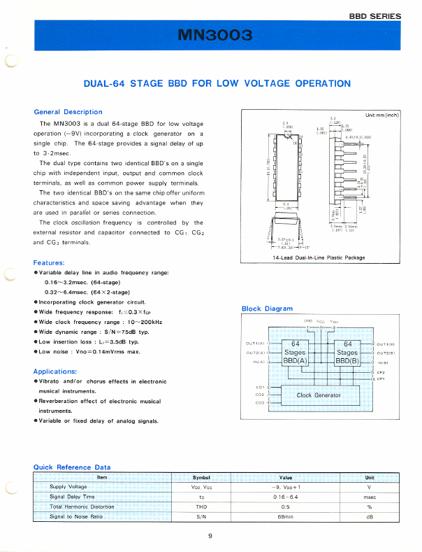 | MN3009 | 256-STAGE LOW NOISE BBD |