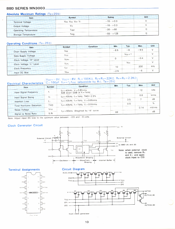 | MN3010 | Dual 512-Stage Low Noise BBD |