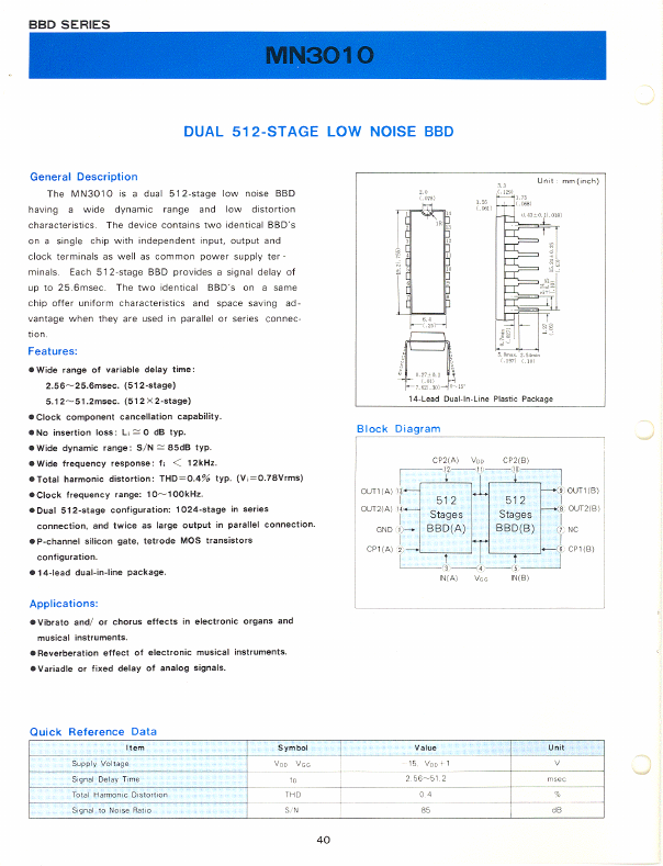 | MN3001 | Dual 512-Stage BBD |