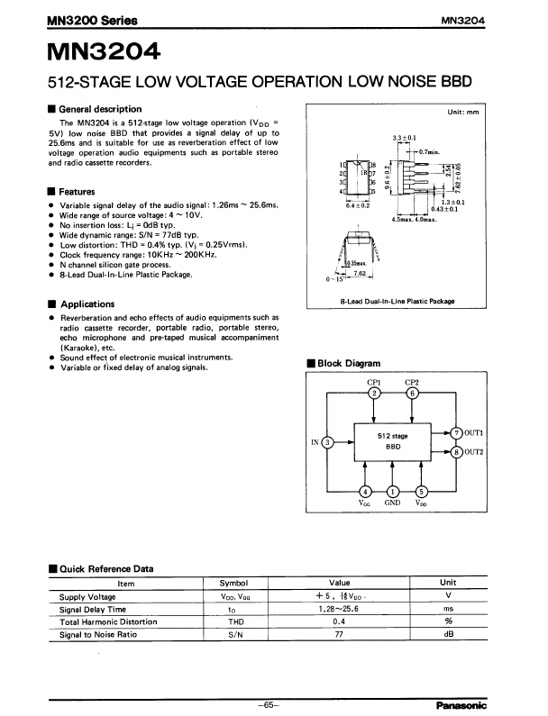 | Description | 512-Stage Low Voltage Operation Low Noise BBD |