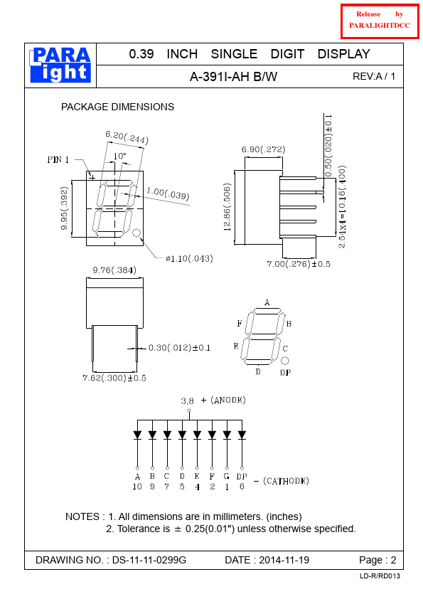 | Description | 0.39 INCH SINGLE DIGIT DISPLAY |