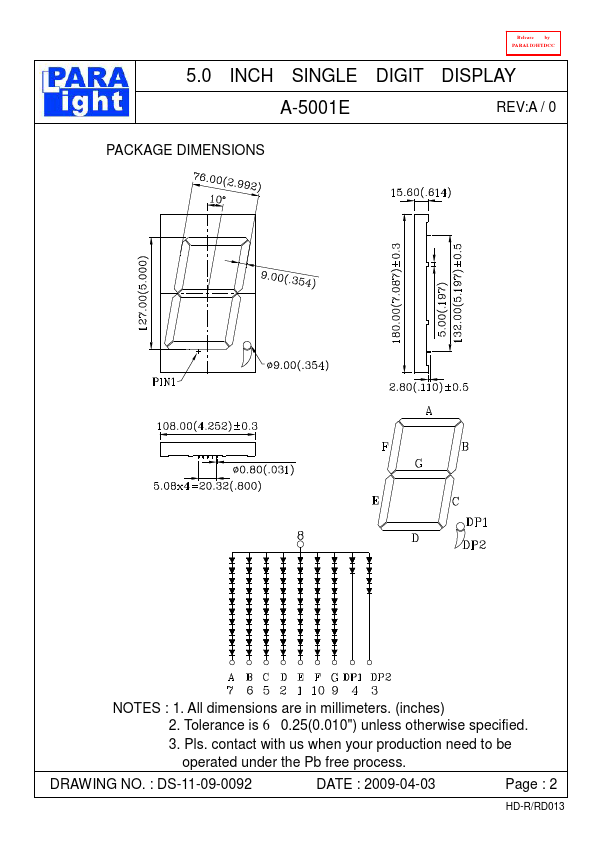 | A-502E | 0.5 INCH DUAL DIGITS DISPLAY |