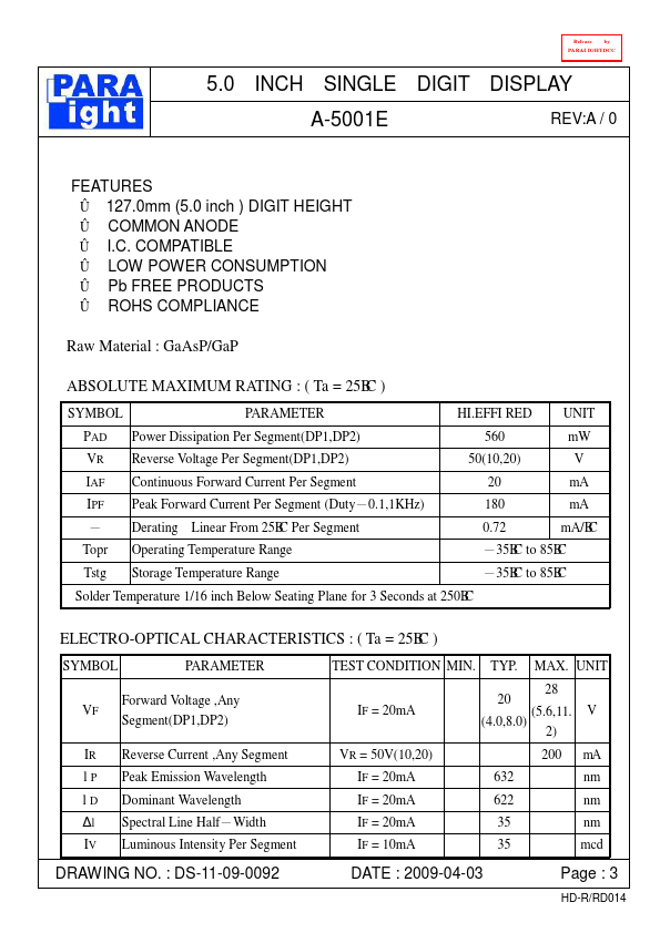 | Datasheet | A-5001E-ParaLightElectronics.pdf |