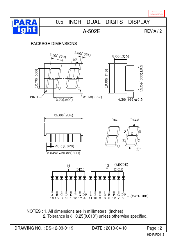 | Description | 0.5 INCH DUAL DIGITS DISPLAY |