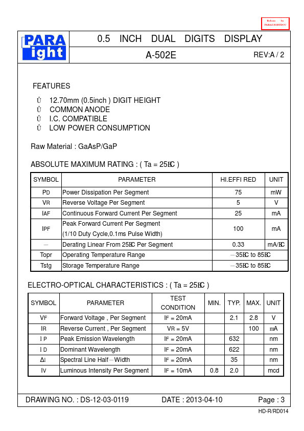 | Datasheet | A-502E-ParaLightElectronics.pdf |