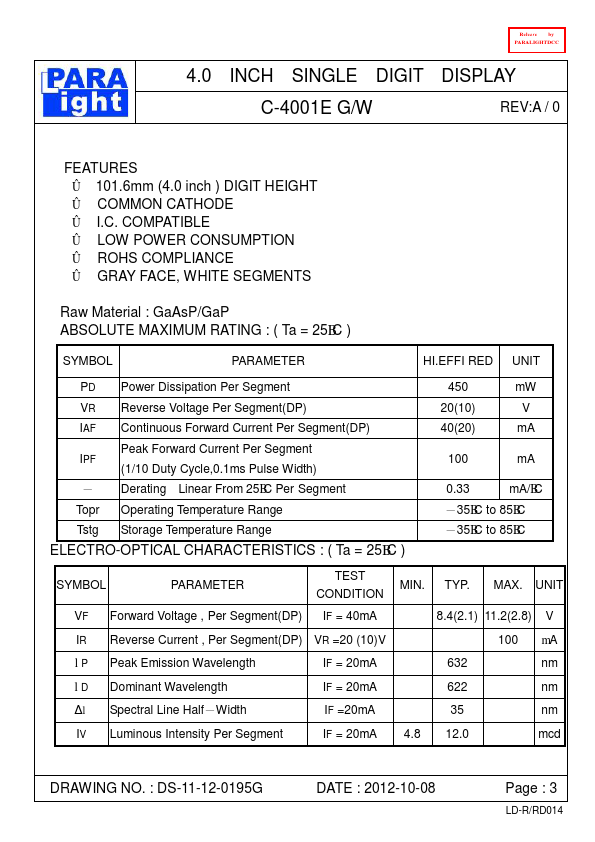 | Datasheet | C-4001EG-W-ParaLightElectronics.pdf |