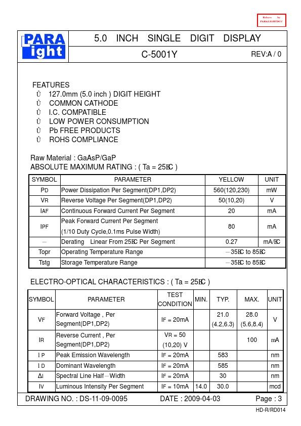 | Datasheet | C-5001Y-ParaLightElectronics.pdf |