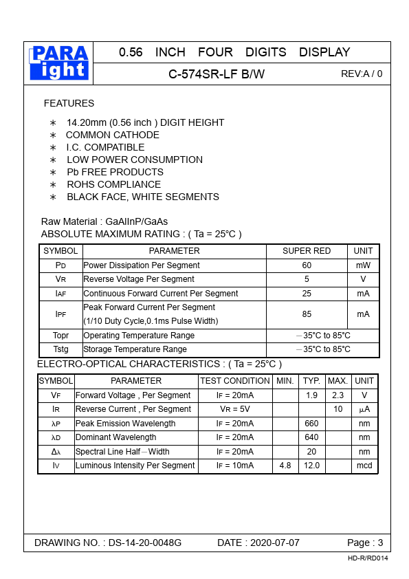 | C-533SR-AG-W | 0.5 INCH THREE DIGITS DISPLAY |