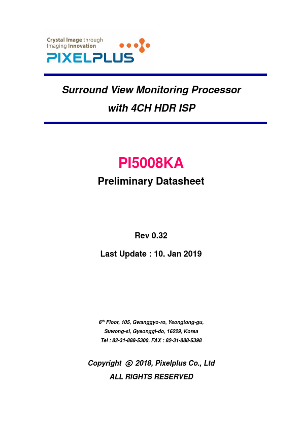 Product Overview The PI5008 is a high performance SVM (Surround View Monitoring) processor for automotive application. A surround view monitor system stitches multi-view from several cameras and helps to figure out where other cars and pedestrians around.