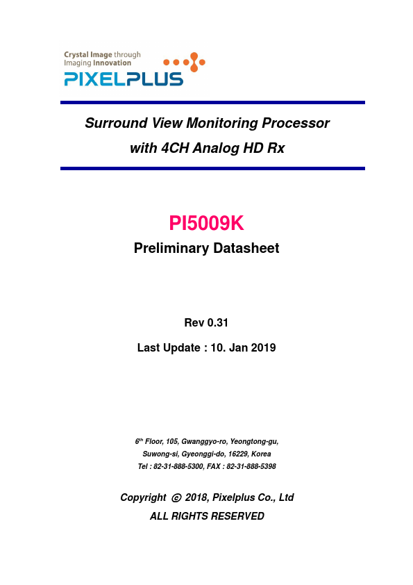 Product Overview The PI5009 is a high performance SVM (Surround View Monitoring) processor for automotive application. A surround view monitor system stitches multi-view from several cameras and helps to figure out where other cars and pedestrians around.
