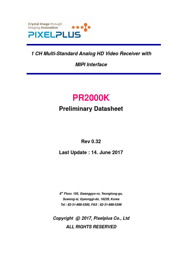Product Overview The PR2000 is a HD/SD video receiver which accepts Any Standard and Resolution of Analog HD/SD video and guarantees high quality image for Long-Reach Analog HD applications. It accepts Single-ended/Differential analog HD/SD video signal from camera, then Cable Equalizer compensates cable attenuation, and HD/SD video decoder converts analog video signal to digital component data.