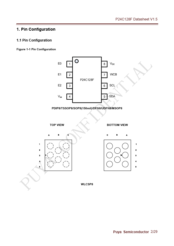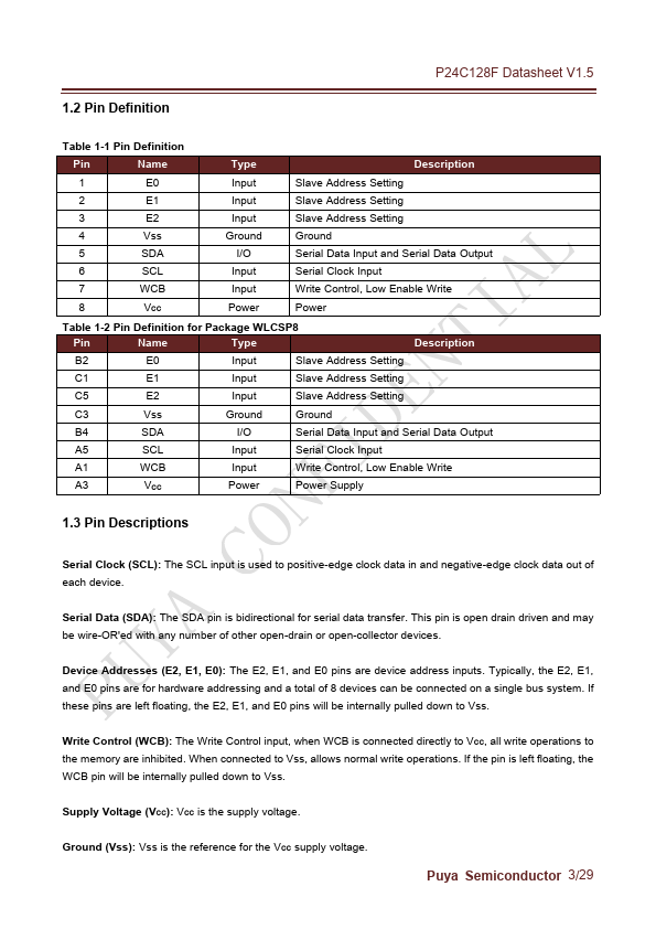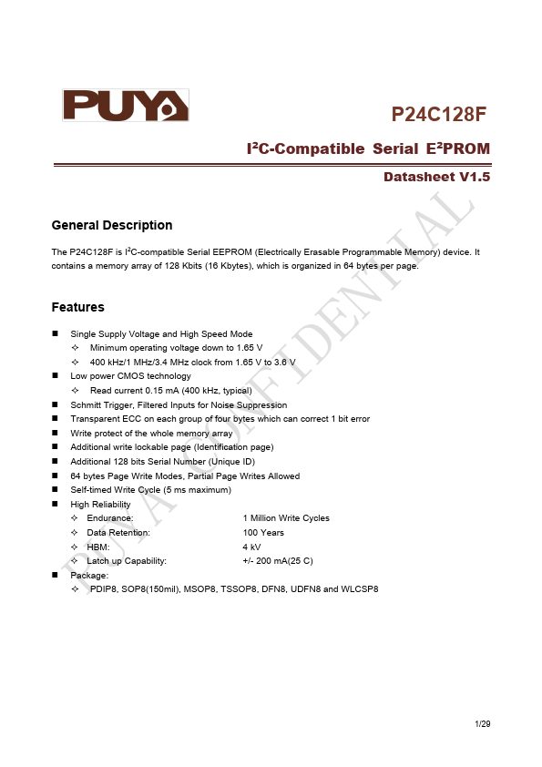 The P24C128F is I2C-patible Serial EEPROM (Electrically Erasable Programmable Memory) device. It contains a memory array of 128 Kbits (16 Kbytes), which is organized in 64 bytes per page.