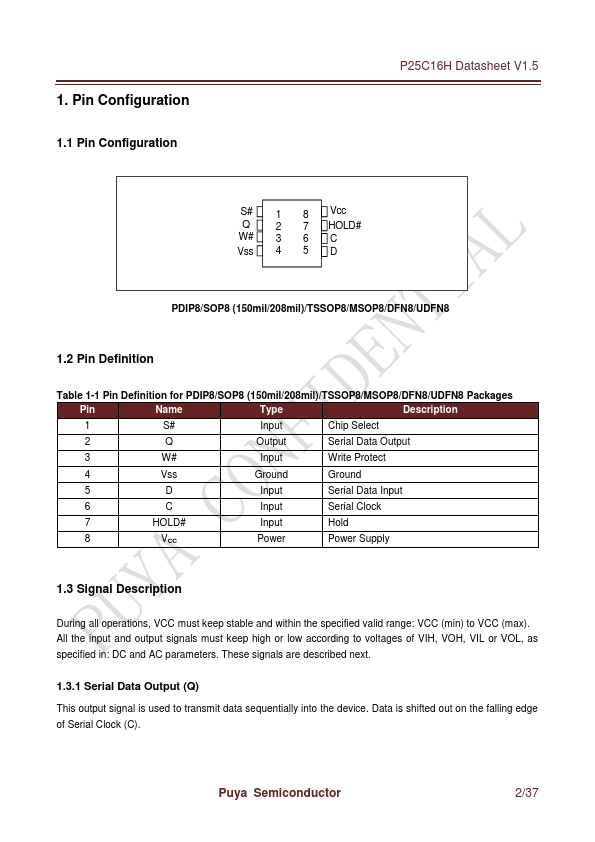 - Standard SPI: C, S#, D, Q, W#, HOLD#
