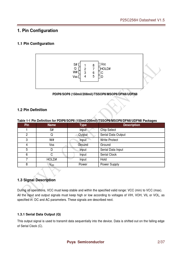 - Standard SPI: C, S#, D, Q, W#, HOLD#