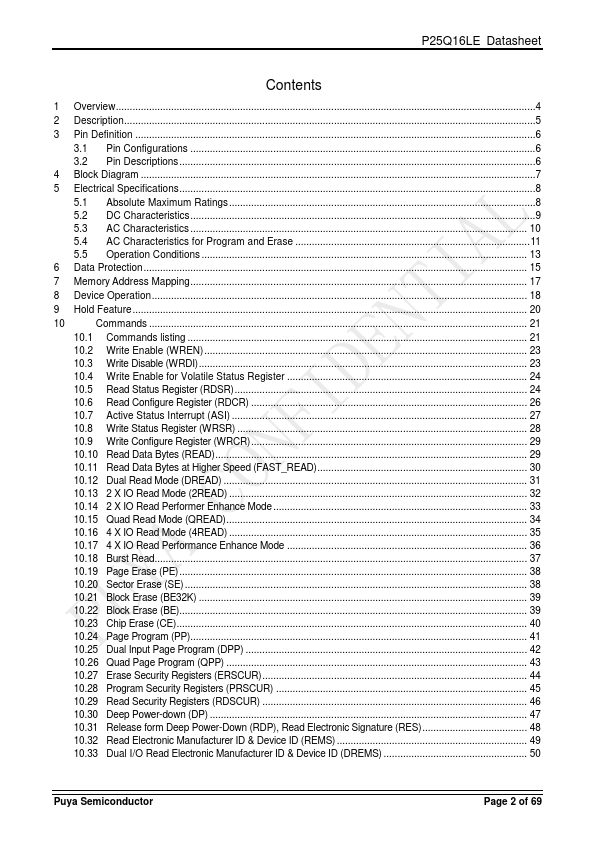 10 5.4 AC Characteristics for Program and Erase .....................................................................................11 5.5 Operation Conditions ...................................................................................................................... 13 6 Data Protection...