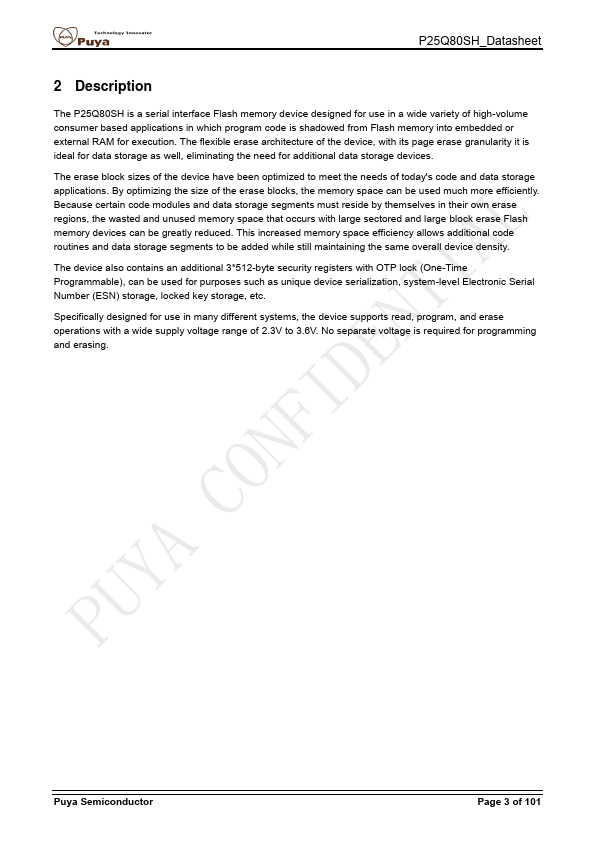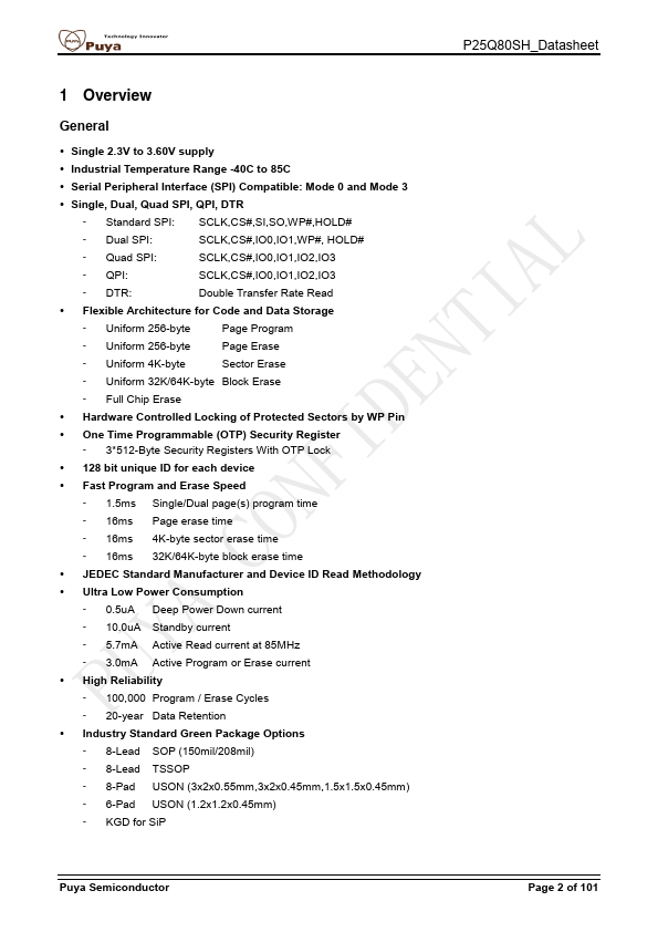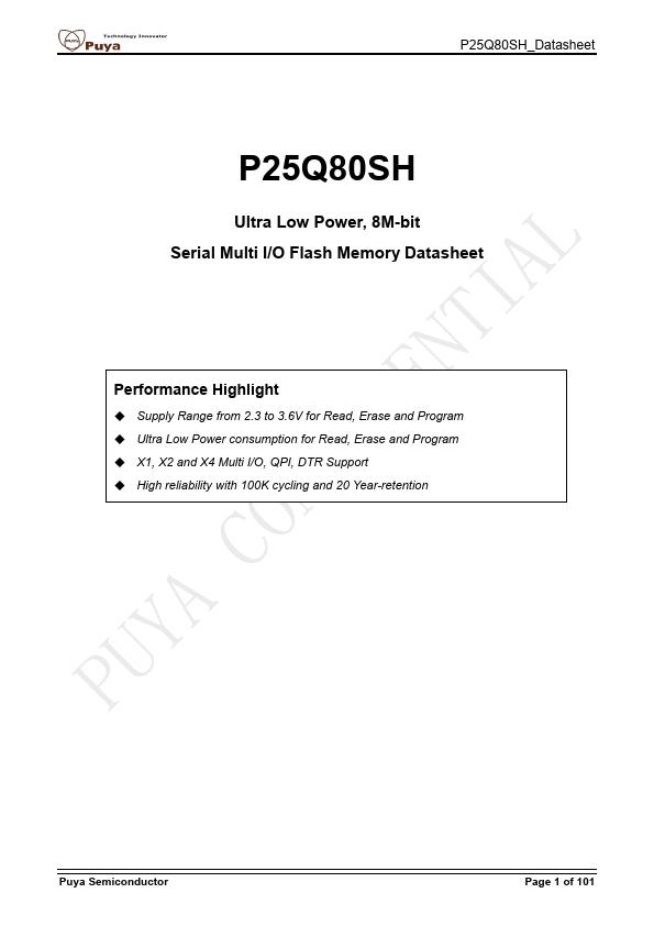 The P25Q80SH is a serial interface Flash memory device designed for use in a wide variety of high-volume consumer based applications in which program code is shadowed from Flash memory into embedded or external RAM for execution. The flexible erase architecture of the device, with its page erase granularity it is ideal for data storage as well, eliminating the need for additional data storage devices. The erase...
