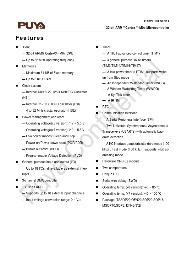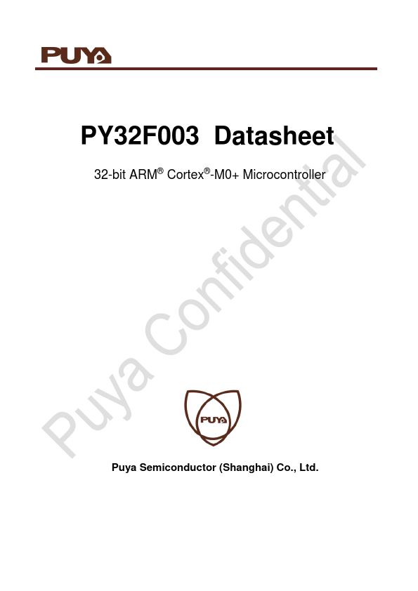 PY32F003 Datasheet 32-bit ARM® Cortex®-M0+ Microcontroller Puya Semiconductor (Shanghai) Co., Ltd.