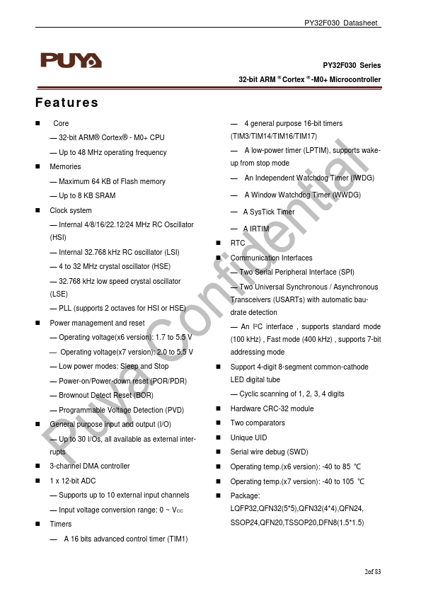 PY32F030 Datasheet 32-bit ARM® Cortex®-M0+ Microcontroller Puya Semiconductor (Shanghai) Co., Ltd.