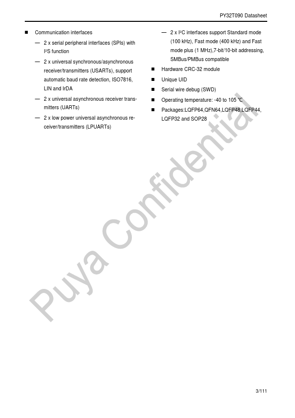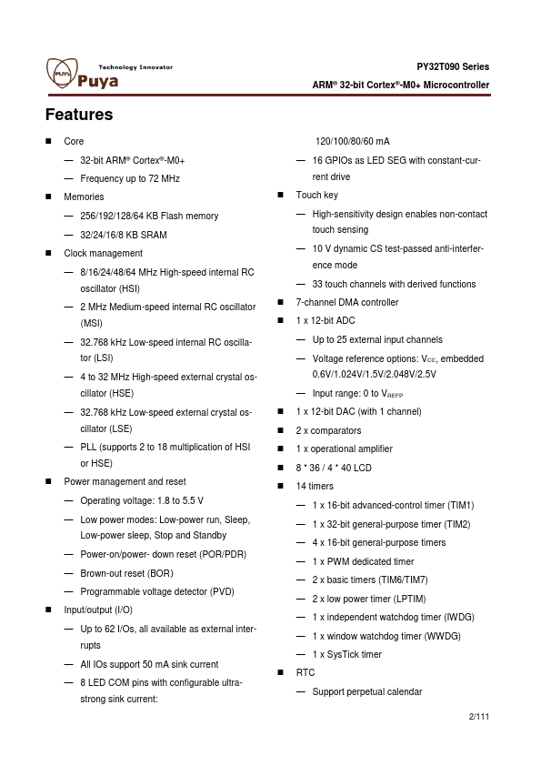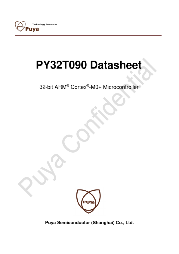 PY32T090 Datasheet 32-bit ARM® Cortex®-M0+ Microcontroller Puya Semiconductor (Shanghai) Co., Ltd. PY32T090 Series ARM® 32-bit Cortex®-M0+ Microcontroller.
