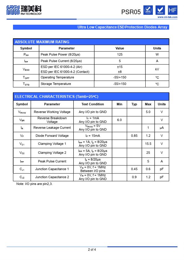 | Description | Ultra Low Capacitance ESD Protection Diodes Array |