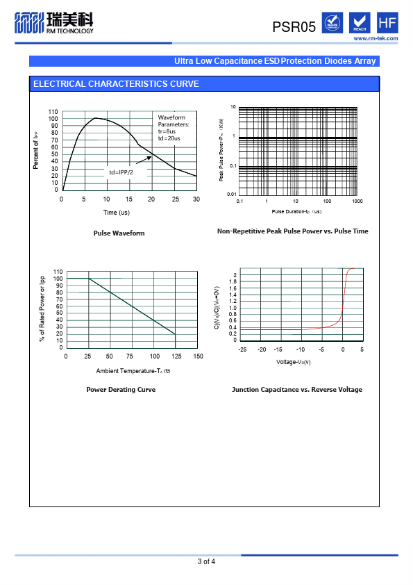 PSR05 provides a typical line to line capacitance of 0.6pF and low insertion loss up to 3GHz providing greater signal integrity making it ideally suited for USB 2.0 applications, such as Digital TVs, DVD players, Computing, set-top boxes and MDDI applications in mobile computing devices.
