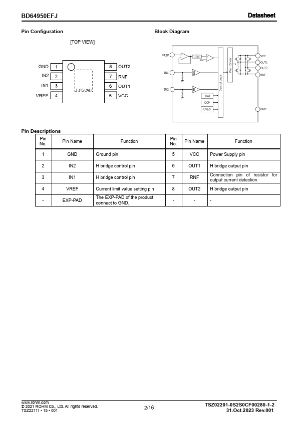 BD64950EFJ is a built in 1 channel H-bridge motor driver for DC brush motors.
