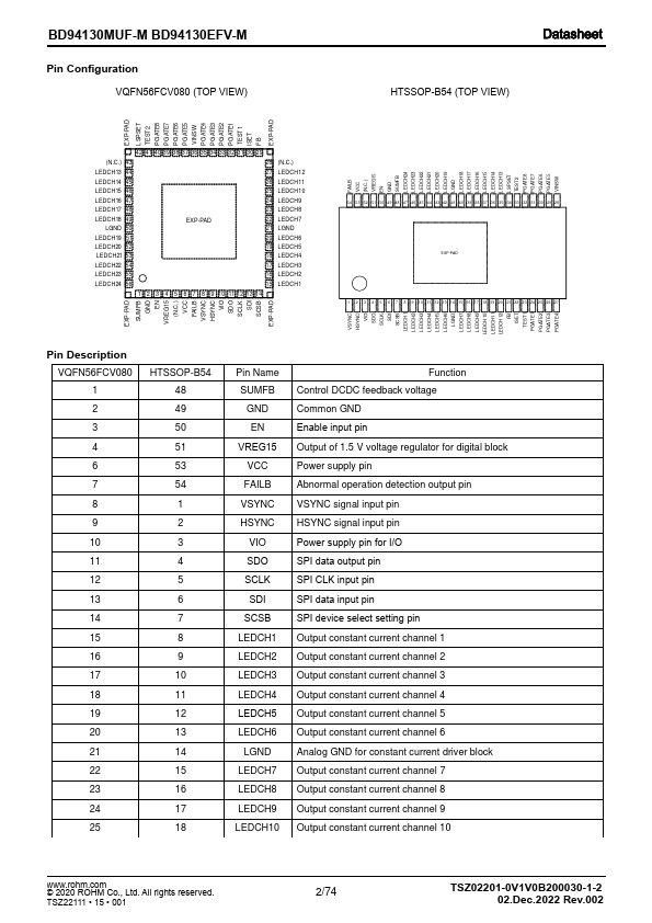 BD94130MUF-M/BD94130EFV-M are embedded 24channel constant current drivers with 12bit PWM dimming and max 8-line switch controllers. This device can set LED constant current value by setting external ISET resistor. munication with μ-controller via SPI is feasible.