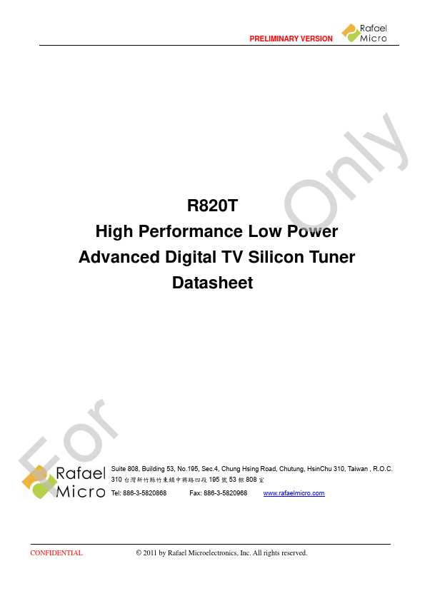 In heritage from Rafael Micro’s state-of-the-art architecture, the R820T digital silicon tuner achieves the lowest power consumption and the smallest font factor. R820T offers unmatchable RF performance for all digital broadcast television standards including DVB-T, ATSC, DMB-T, ISDB-T.