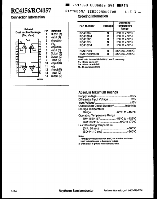 This datasheet PDF includes multiple part numbers: RC4157, RC4156. Please refer to the document for exact specifications by model. |