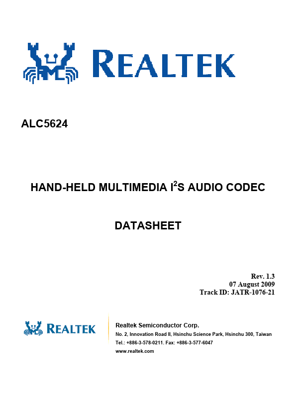| ALC5624-GR | Realtek | HAND-HELD MULTIMEDIA I2S AUDIO CODEC |