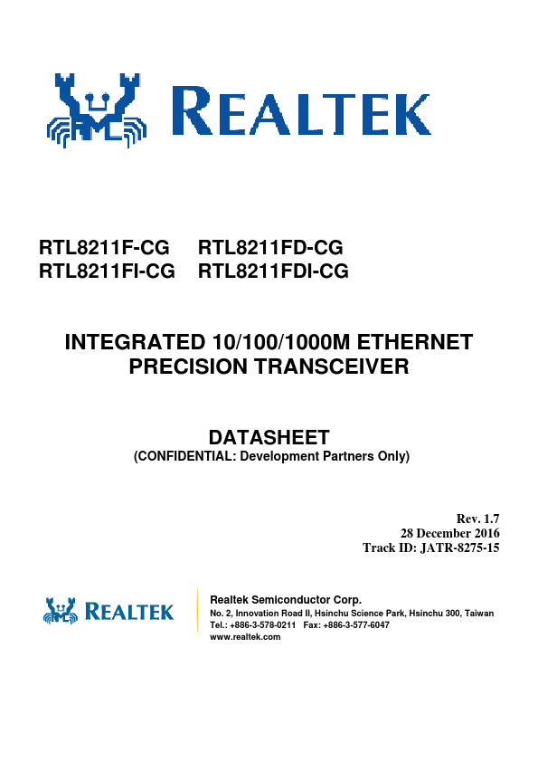 The Realtek RTL8211F-CG/RTL8211FD-CG/RTL8211FI-CG/RTL8211FDI-CG is a highly integrated Ethernet transceiver that complies with 10Base-T, 100Base-TX, and 1000Base-T IEEE 802.3 standards. It provides all the necessary physical layer functions to transmit and receive Ethernet packets over CAT.5 UTP cable.