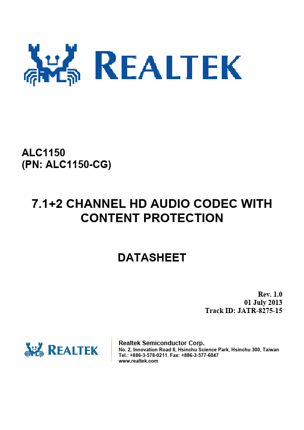 The ALC1150 is a high-performance multi-channel High Definition Audio Codec with Realtek proprietary lossless content protection technology that protects pre-recorded content while still allowing full-rate audio enjoyment from DVD audio, Blu-ray DVD, or HD DVD discs. The ALC1150 provides ten DAC channels that simultaneously support 7.1-channel sound playback, plus 2 channels of independent stereo sound output (multiple streaming) through the front panel stereo outputs.