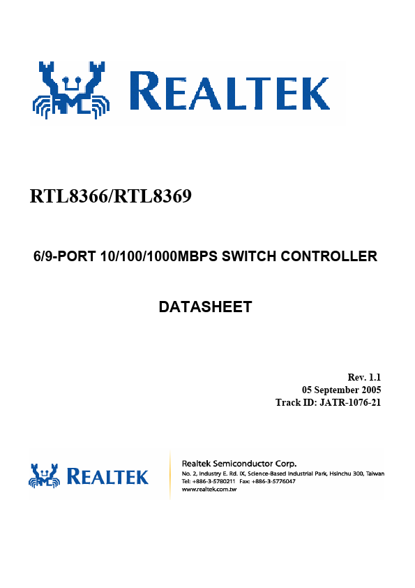 The RTL8366 and RTL8369 are 128-pin, ultra-low-power, high-performance 5/8-port Gigabit Ethernet switches, with one extra GMII/MII/RGMII port for specific applications. They integrate all the functions of a high speed switch system; including SRAM for packet buffering, non-blocking switch fabric, and internal register management into a single 0.15µm CMOS device.