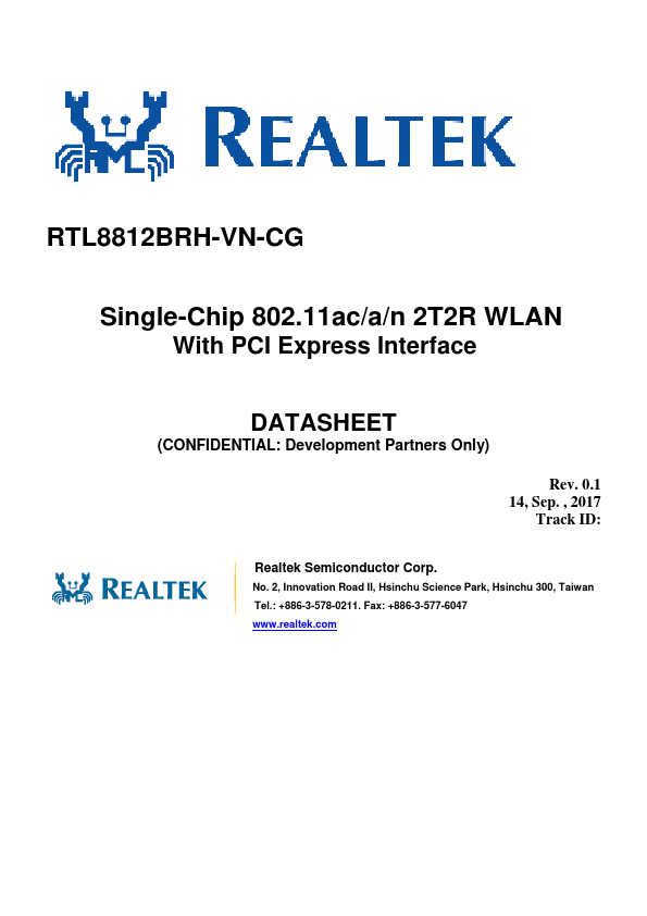 | Description | Single-Chip 802.11ac/a/n 2T2R WLAN |
