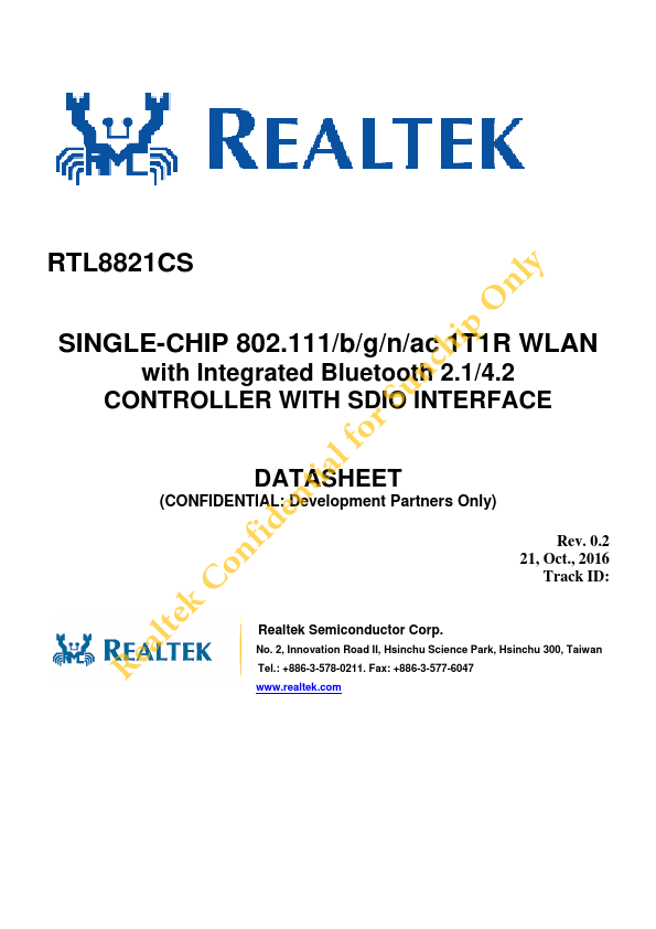 The Realtek RTL8821CS is a highly integrated single-chip that support 1-stream 802.11ac solutions with Multi-user MIMO (Multiple-Input, Multiple-Output) STA mode with integrated Bluetooth 2.1/4.2 controller, SDIO (SDIO 1.1/2.0/3.0) interface, and HS-UART mixed interface. It combines a WLAN MAC, a 1T1R capable WLAN baseband, and RF in s single chip.