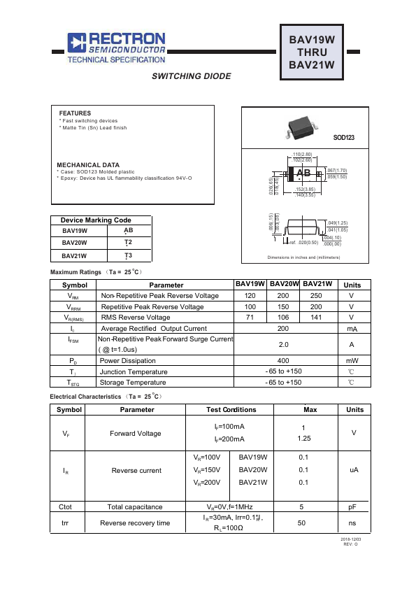 - Case: SOD123 Molded plastic
