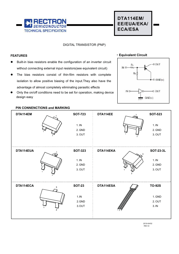 Overview: DTA114EM/ EE/EUA/EKA/ ECA/ESA DIGITAL TRANSISTOR (PNP).