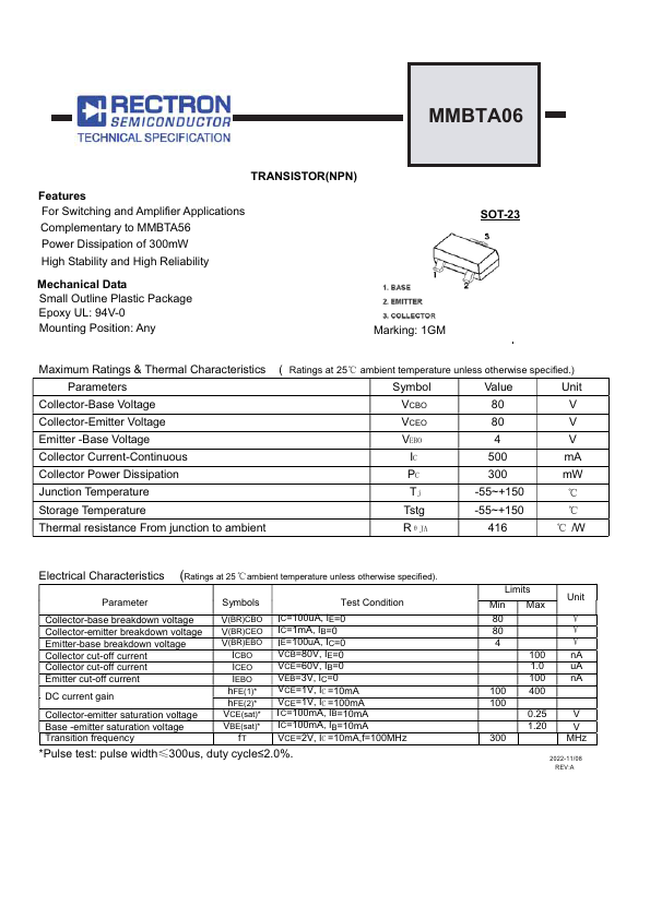 | Datasheet | MMBTA06-Rectron.pdf |