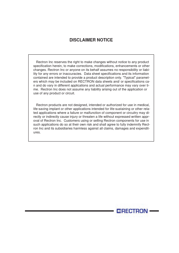 "Typical" parameters which may be included on RECTRON data sheets and/ or specifications can and do vary in different applications and actual performance may vary over time.