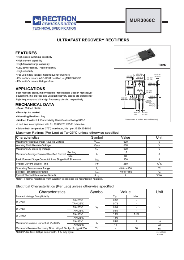 - P/N suffix V means AEC-Q101 qualified, e.gMUR3060CV