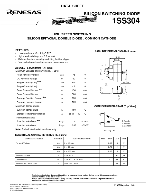 | Datasheet | 1SS304-Renesas.pdf |