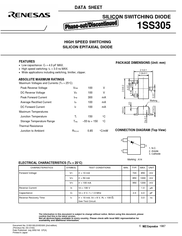 | Datasheet | 1SS305-Renesas.pdf |