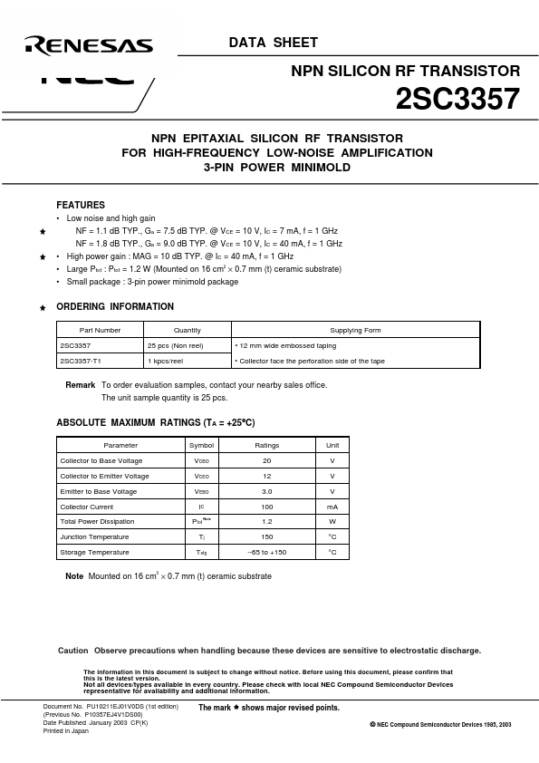 | Datasheet | 2SC3357_Renesas.pdf |