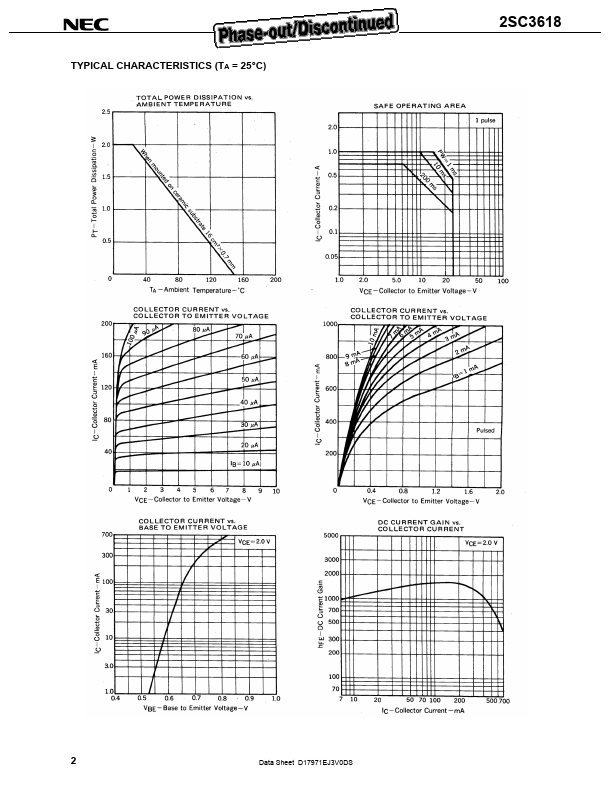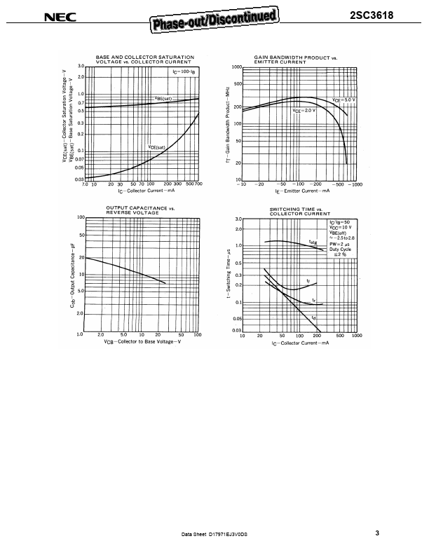 confirm that this is the latest version. Not all products and/or types are available in every country. Please check with an NEC Electronics sales representative for availability and additional information. Document No. D17971EJ3V0DS00 (3rd edition) c (Previous No. TC-1641A) Date Published March 2006 NS CP(K) Printed in Japan 1985 TYPICAL CHARACTERISTICS (TA = 25°C) 2SC3618 2 Data Sheet D17971EJ3V0DS 2SC3618 Data Sheet D17971EJ3V0DS 3 2SC3618