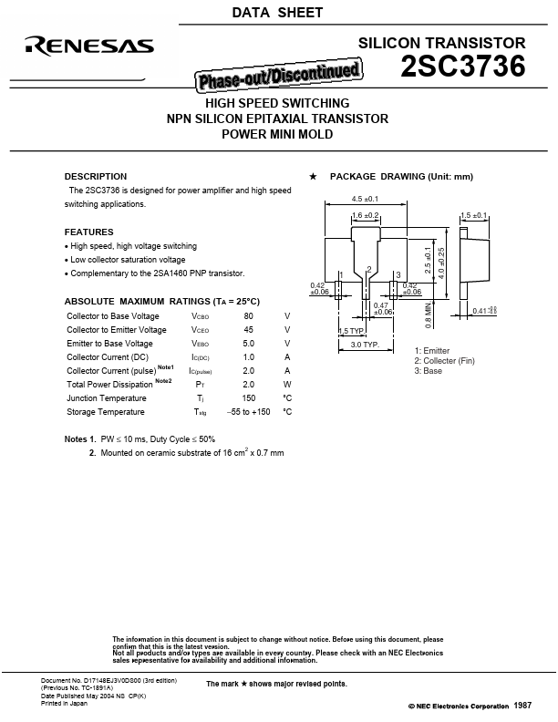 | 2SC3736 | HIGH SPEED SWITCHING NPN SILICON EPITAXIAL TRANSISTOR | NEC |