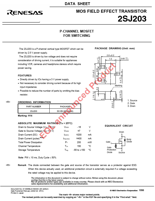 | 2SJ203 | MOS FIELD EFFECT TRANSISTOR | NEC |