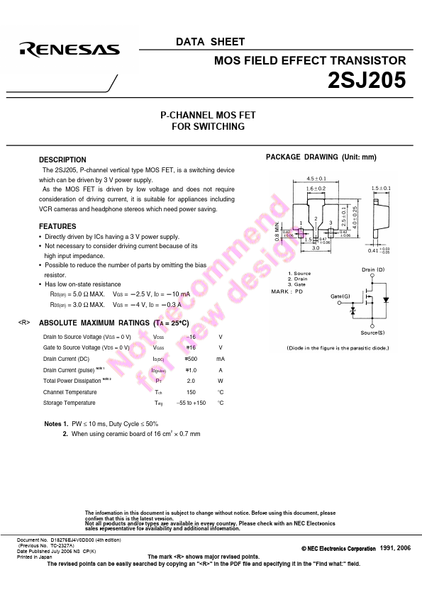 DESCRIPTION The 2SJ205, P-channel vertical type MOS FET, is a switching device