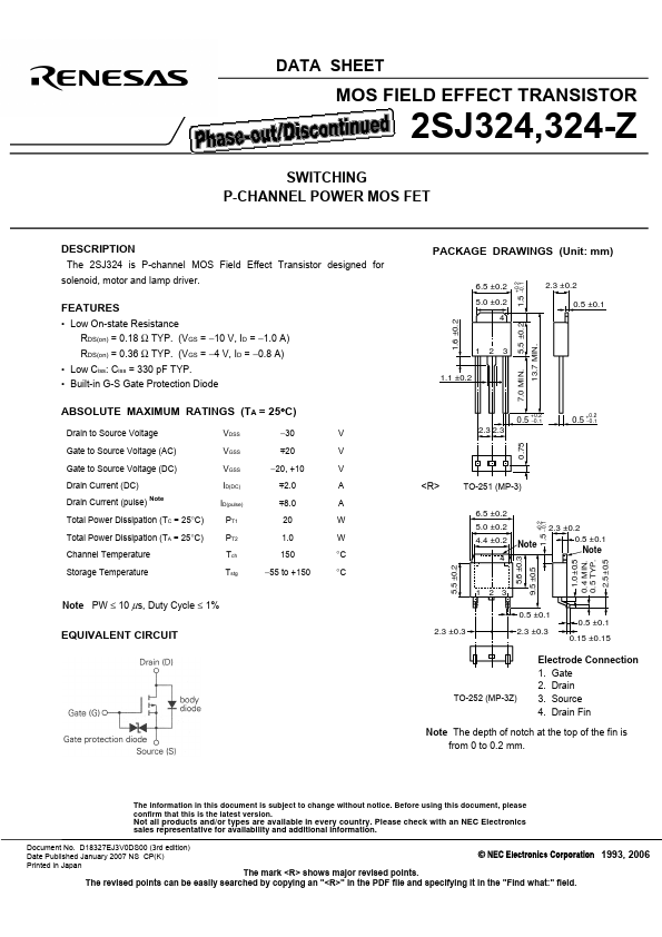 | 2SJ324-Z | P-Channel MOSFET | NEC |