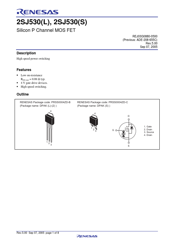 • Low on-resistance RDS (on) = 0.08 Ω typ.