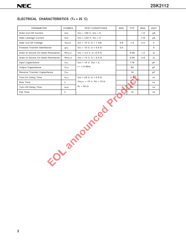 The 2SK2112 is a N-channel MOS FET of a vertical type and is a switching element that can be directly driven by the output of an IC operating at 5 V.